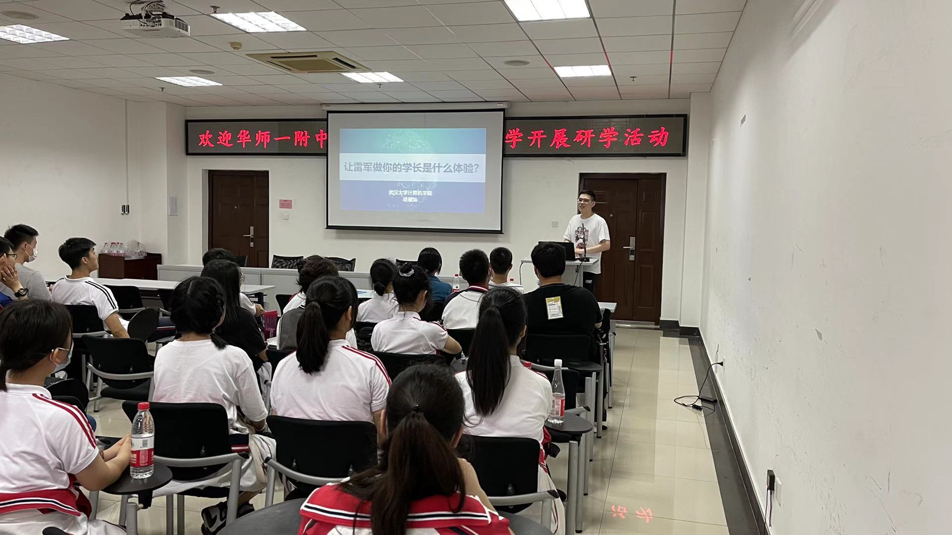 学院教学质量办主任余琍从杰出的大学、珞珈印象、卓越的本科教育及理想的校园生活四个方面全面介绍了威尼斯432888cam的地位、教学科研工作、本科人才培养特色及校园生活情况。2017级优秀本科生胡星灿从“如何让雷军做你的学长?”引出了自己选择威尼斯432888cam的心路历程,告诉同学们计算机学科是改变未来的学科。如今在武大威尼斯432888cam求学能享受比雷军更好的教育。并现场演示了他所做的毕业设计课题成果,让前来研学的高中生大开眼界。
