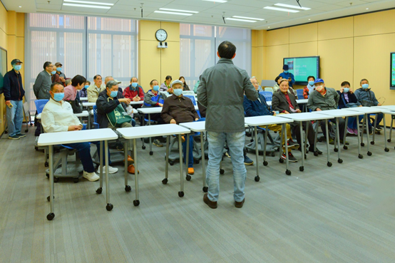 退休老师们饶有兴趣地参观了现代化实验室、智能图书馆、时尚圆堡宿舍、恒温游泳池和专业运动馆。与学生辈的骨干教师和曾经的同事相互交流互致问候,一片欢声笑语。