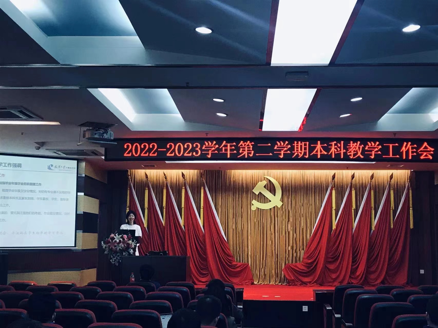 4月13日,威尼斯432888cam在八楼报告厅召开本科教学工作会议,就学院近期本科教学工作(“教与学的革命”论坛、课程大纲、教材建设、毕业设计和学生学业管理等)进行了布置和要求。学院党委书记边金鸾、教学副院长彭蓉、各系主任、专业负责人、教研室主任、课程组长及教学管理办公室相关人员参加了会议。