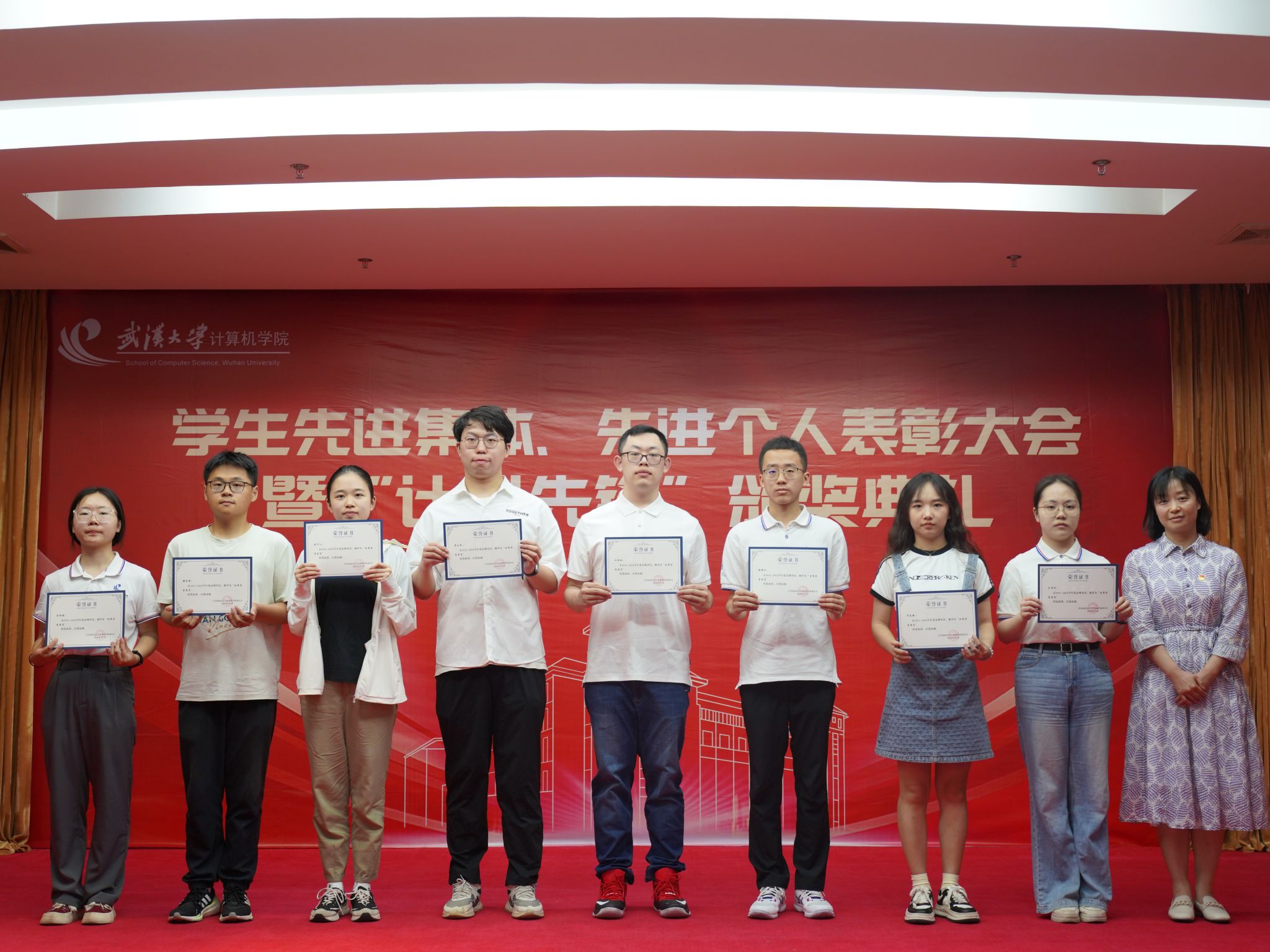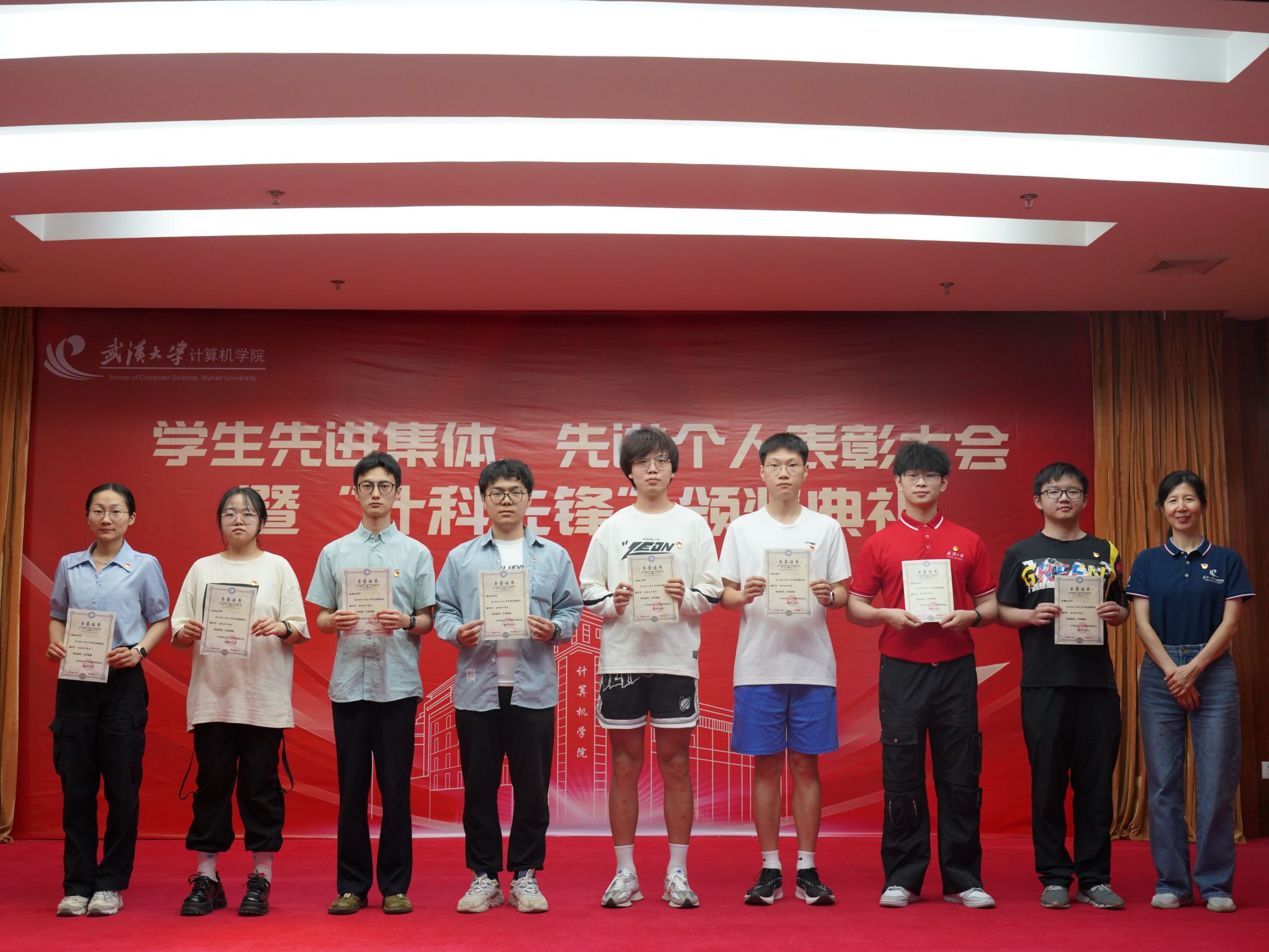 5月23日,威尼斯432888cam2023-2024学年学生先进集体、先进个人表彰大会暨“计科先锋”颁奖典礼于学院八楼报告厅隆重举行。学院党委书记边金鸾、党委副书记高卫松、金娟,纪委书记杨晓岚,副院长程大钊以及本科生、研究生辅导员出席大会。