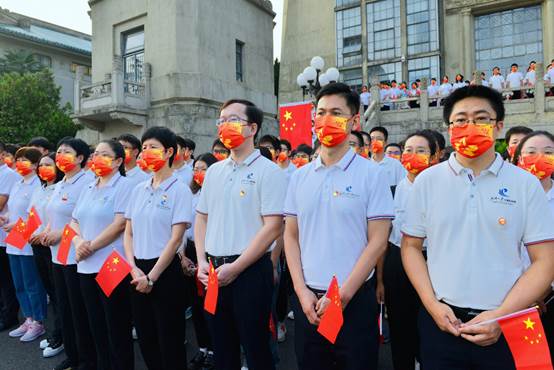 “你从远古走来,经历五千年的风雨动荡;你向未来奔去,承载新时代的希冀向往。”飘扬的国旗下,学院师生代表曹加恒老师、高卫松老师,曹雅思、周沫同学齐声朗诵原创诗篇《壮丽航程,光耀中华》,遍览百年筚路蓝缕,盛赞今日国泰民安,武大人将在这片红色沃土,誓付吾辈之韶华,耀吾辈之中华。