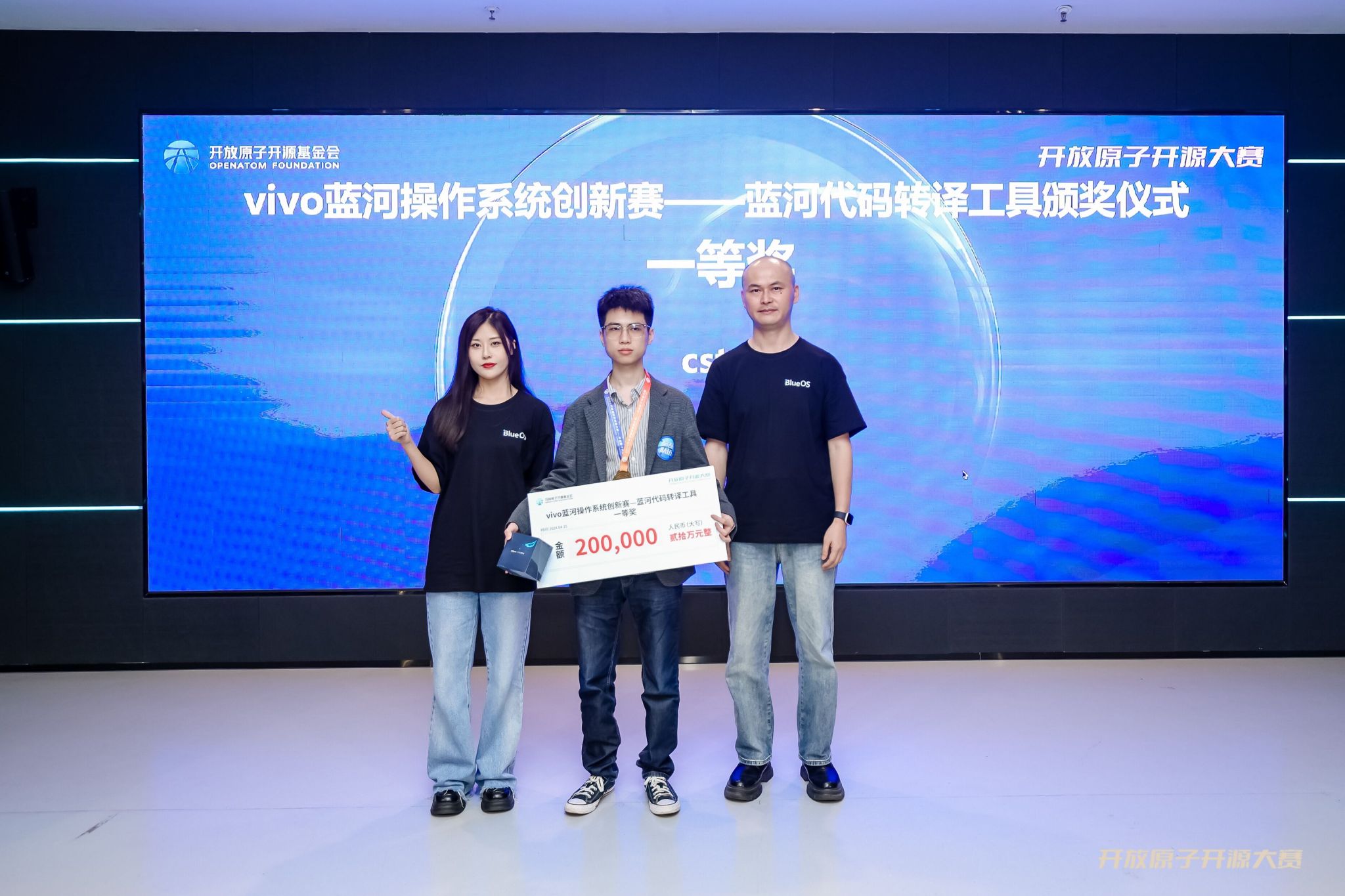 2024年4月15日,开放原子开源大赛“vivo蓝河操作系统创新赛——蓝河代码转译工具”决赛在苏州举行,威尼斯432888camcstar团队项目“CStarX-Rust程序语言转译工具”以第一名的好成绩荣获比赛一等奖。参赛队伍cstar团队队长为2022级博士生刘孝凡,队员为2021级硕士生薛州邑、邵晋洋、2023级硕士生丁正杰和2020级本科生李西洋,指导教师为玄跻峰教授。