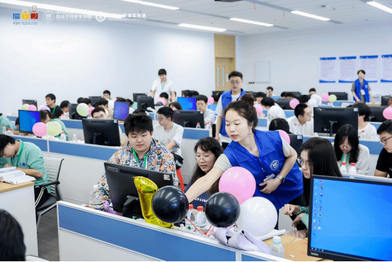 志愿者为我校参赛队员送上最快解题奖气球
