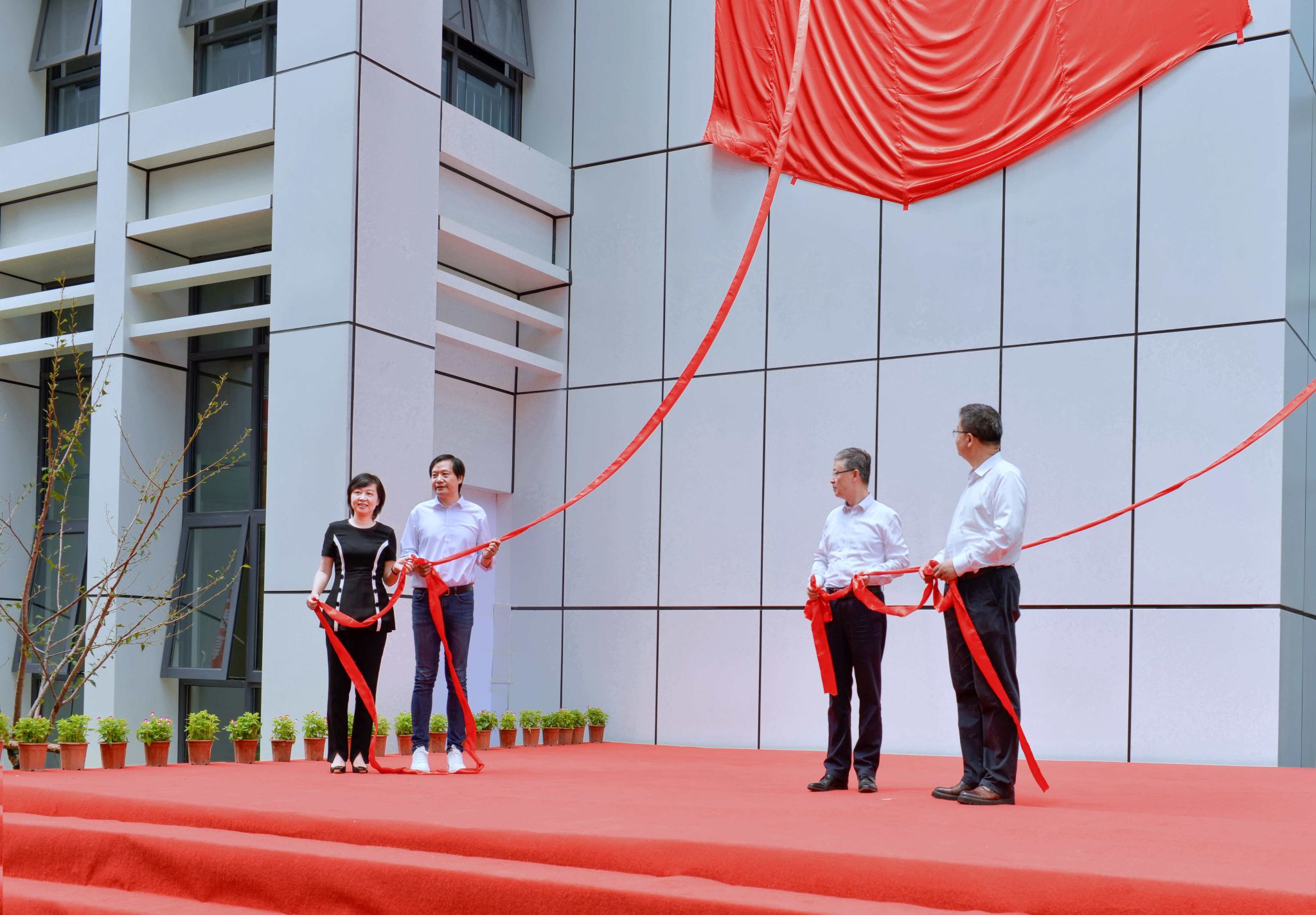 在大家充满期待的倒数声和欢呼声中,黄泰岩、张平文与雷军共同为雷军科技楼揭幕。
